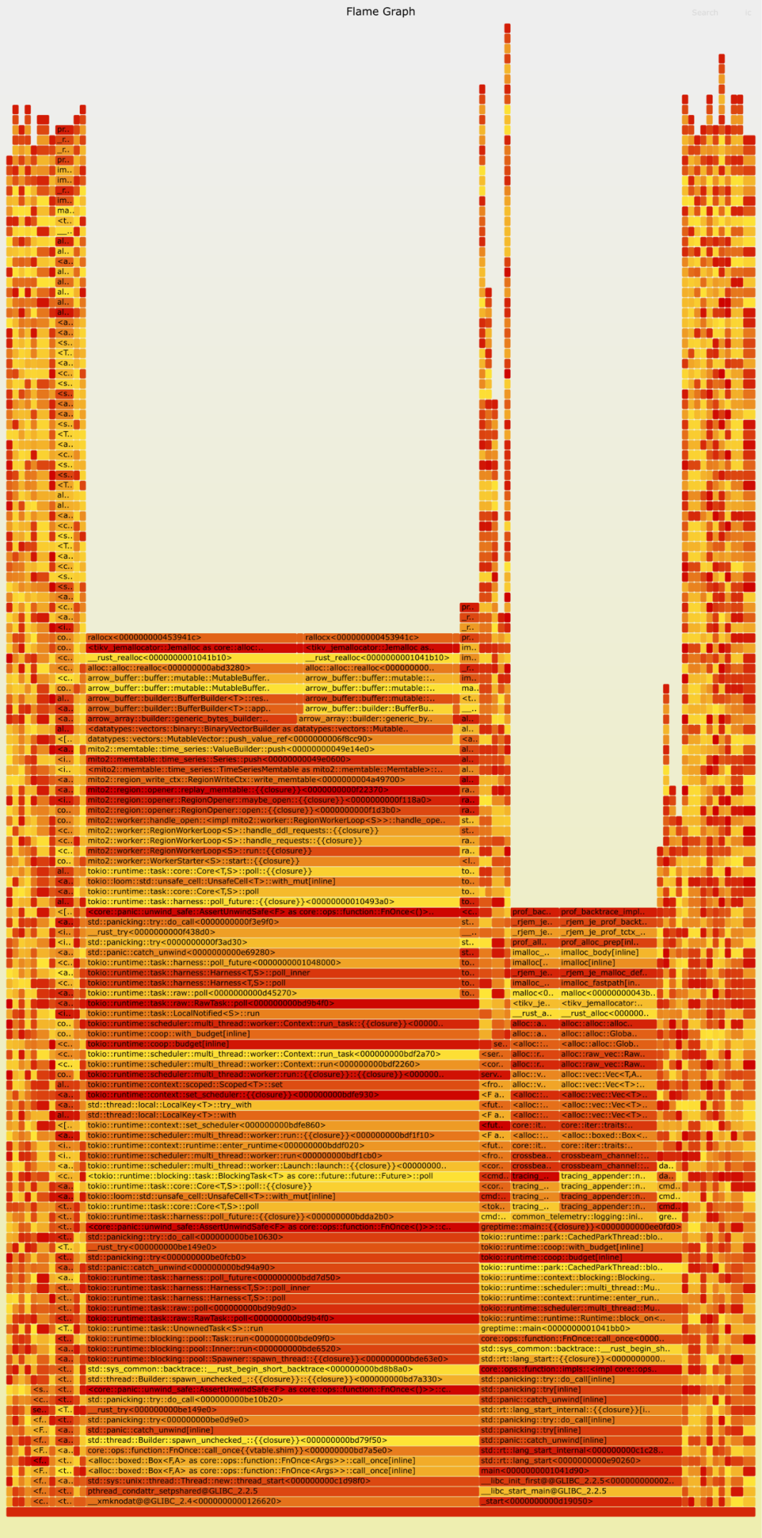 jeprof <path_to_greptime_binary> ./mem.hprof --collapse | flamegraph.pl > mem-prof.svg执行完以上命令后将在当前目录生成文件名为 mem-prof.svg 的火焰图: